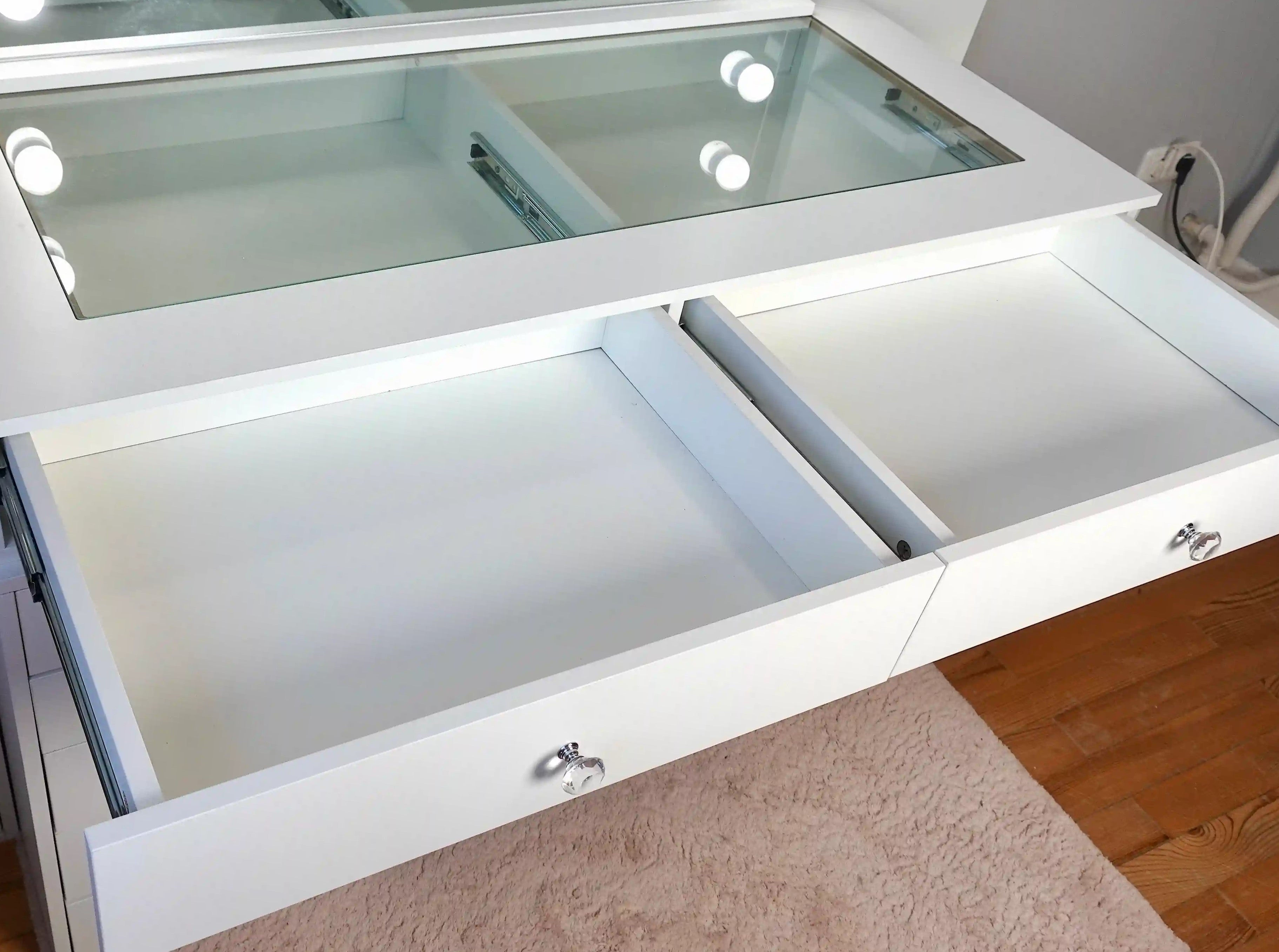 ✔ 2 große Schubladen unter der edlen Glasplatte für deine täglichen Favoriten