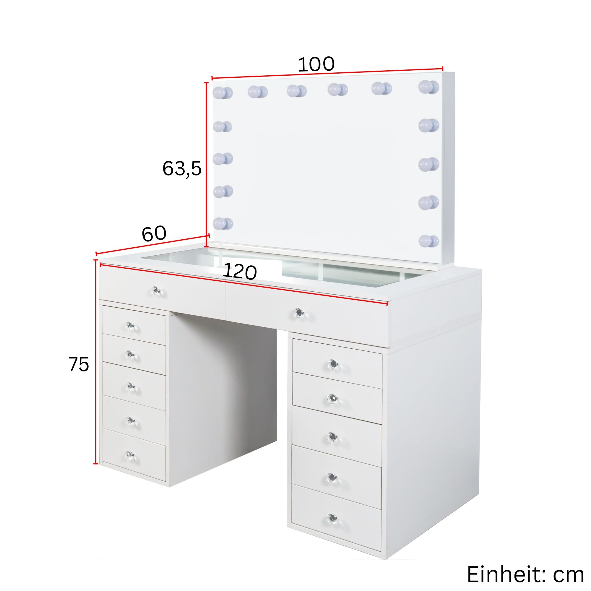 Verwandle deine Make-up-Routine in ein glamouröses Erlebnis – mit unserem exklusiven Hollywood Schminktisch! Perfekt ausgeleuchtet, stilvoll designt und mit maximalem Stauraum ausgestattet, bringt dieser Schminktisch das Feeling einer VIP-Beauty-Lounge direkt in dein Zuhause.