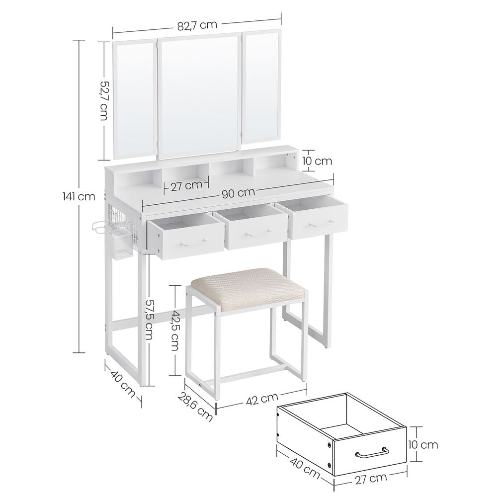 Schminktisch mit 3 teiligem Spiegel und Hocker