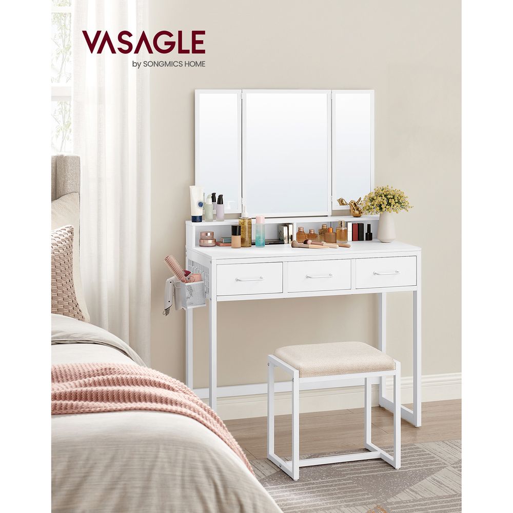 Verwandle dein Zimmer in eine stilvolle Beauty-Oase mit dem Schminktisch mit 3-teiligem Klappspiegel!