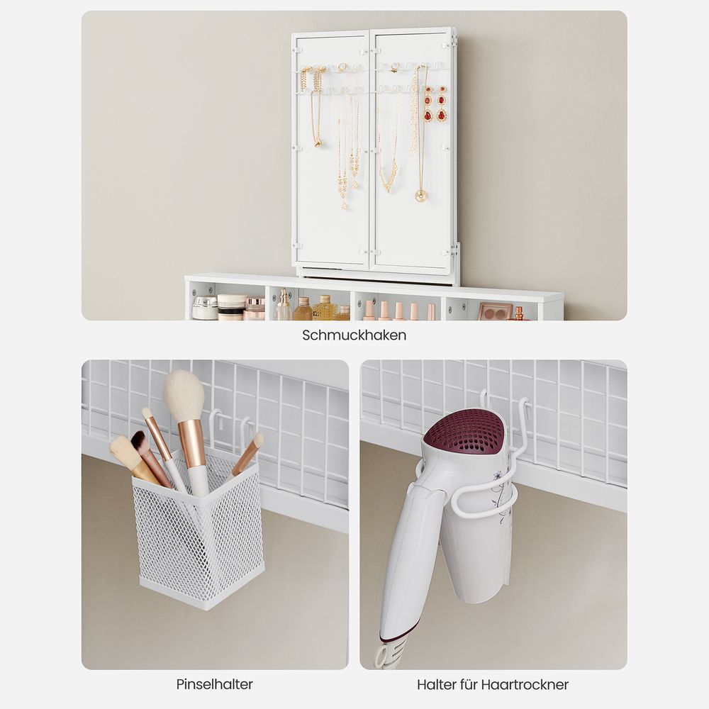Flexibler 3-teiliger Klappspiegel Der dreiteilige Klappspiegel ermöglicht dir, dein Make-up aus verschiedenen Winkeln zu betrachten, sodass du stets den perfekten Look erzielst. Bei Bedarf lassen sich die Seitenspiegel einklappen, um den Tisch vor Staub zu schützen.
