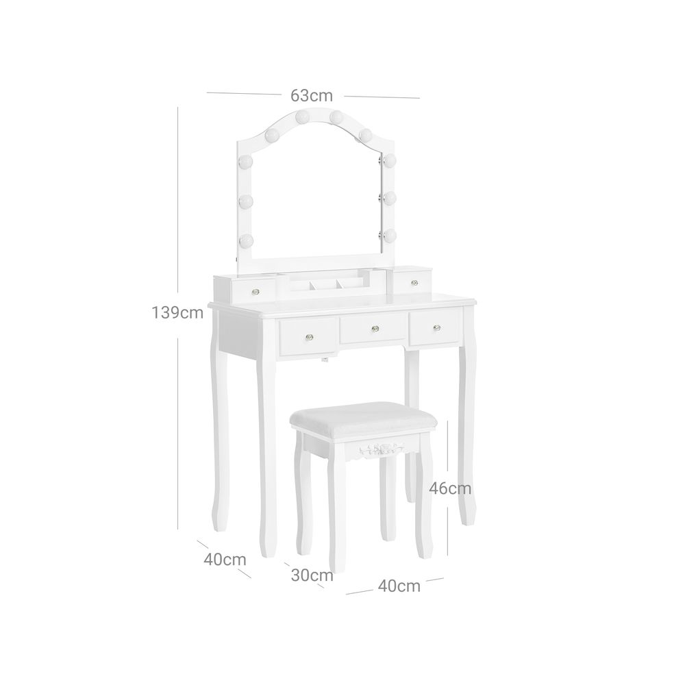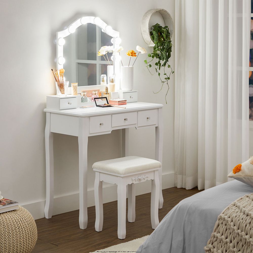 Vintage Schminktisch mit LED-Spiegel & Hocker – Eleganz trifft Funktion